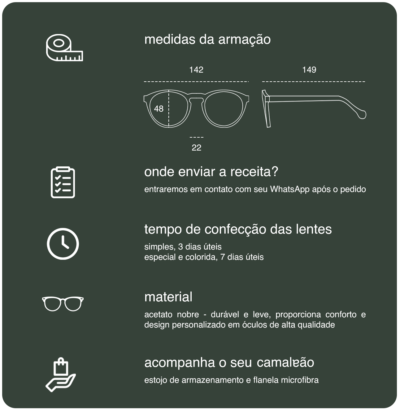 Material Acetato Premium: Feitos com acetato de alta qualidade, eles são leves e confortáveis, garantindo um encaixe perfeito no seu rosto.