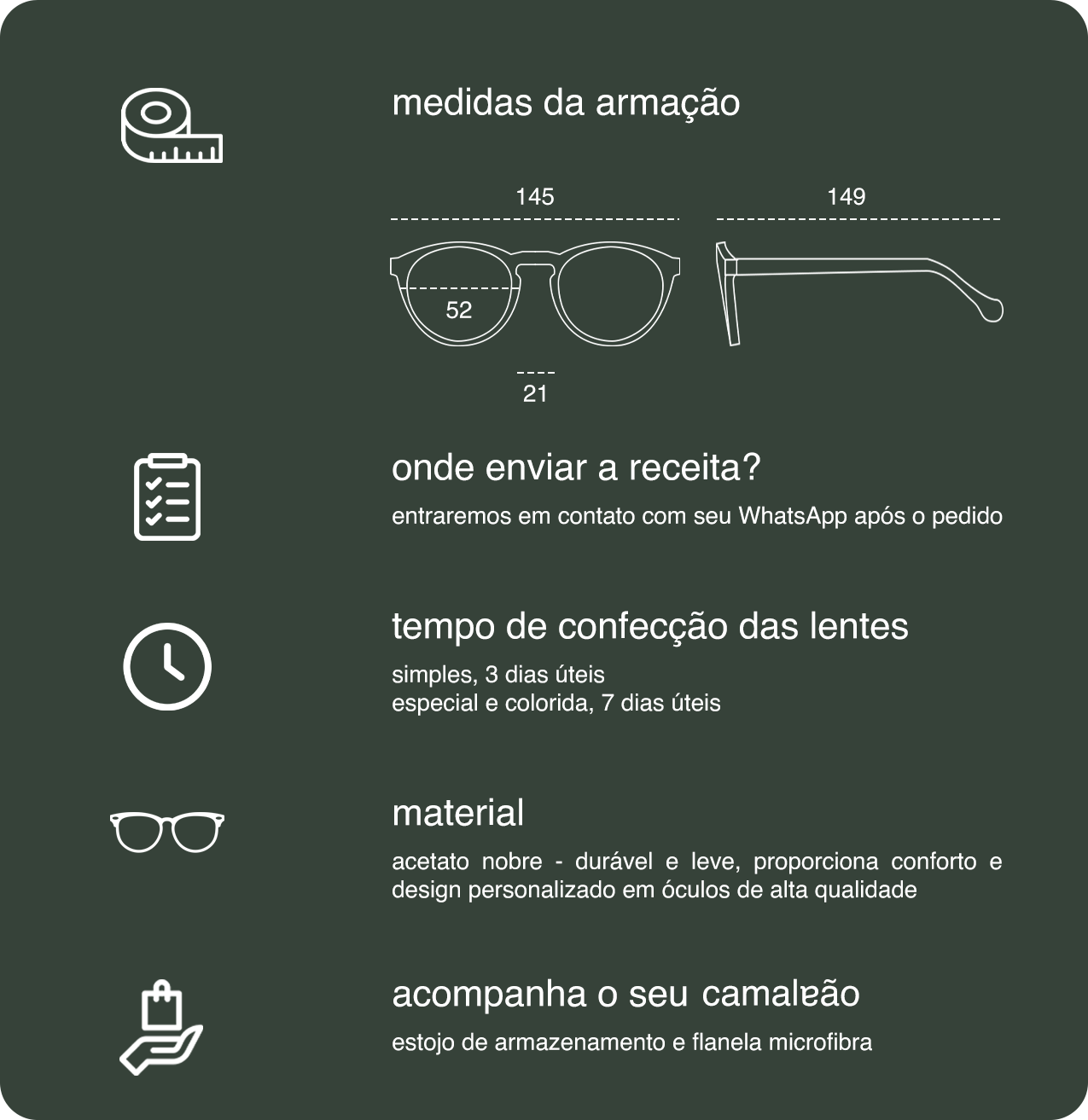 Material Acetato Premium: Confeccionados em acetato de alta qualidade, os Óculos Mia são leves e confortáveis, garantindo um encaixe perfeito no seu rosto.